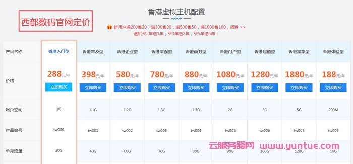 2、下图西部数码官网定价