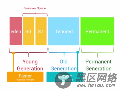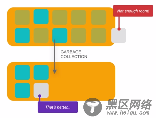Android系统里面有一个Generational Heap Memory的模型,系统会根据内存中不同的内存数据类型分别执行不同的GC操作。例如,最近刚分配的对象会放在Young Generation区域,这个区域的对象通常都是会快速被创建并且很快被销毁回收的,同时这个区域的GC操作速度也是比Old Generation区域的GC操作速度更快的。