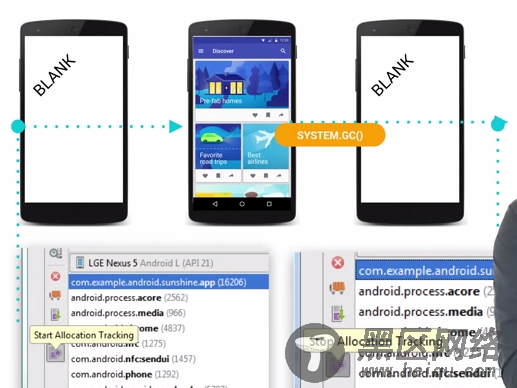 9)Garbage Collection in AndroidJVM的回收机制给开发人员带来很大的好处,不用时刻处理对象的分配与回收,可以更加专注于更加高级的代码实现。相比起Java,C与C++等语言具备更高的执行效率,他们需要开发人员自己关注对象的分配与回收,但是在一个庞大的系统当中,还是免不了经常发生部分对象忘记回收的情况,这就是内存泄漏。