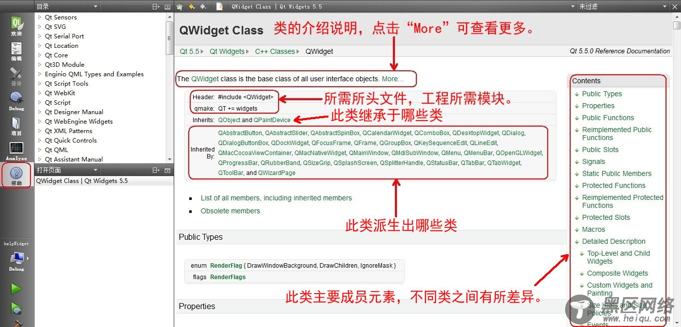 查看所用部件的相应成员函数( 本身的成员函数,继承过来的成员函数 ),主要是为了查看这个成员函数如何使用,包括函数的功能,参数,返回值。