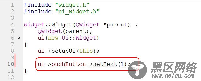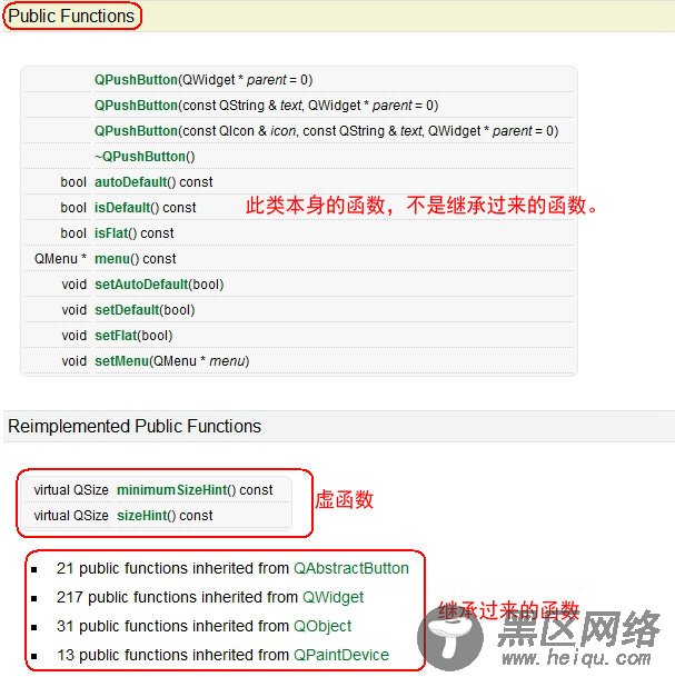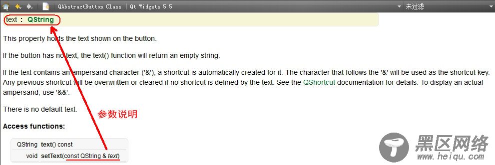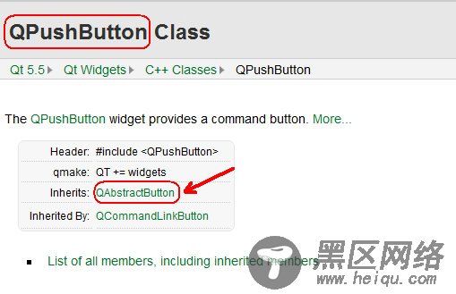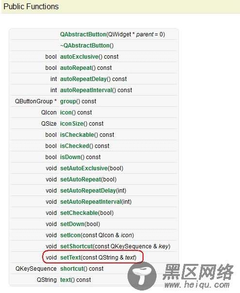 d)很多时候,我们需要使用到继承过来的函数,如给按钮设置内容( setText() )即是从 QAbstractButton 继承过来: