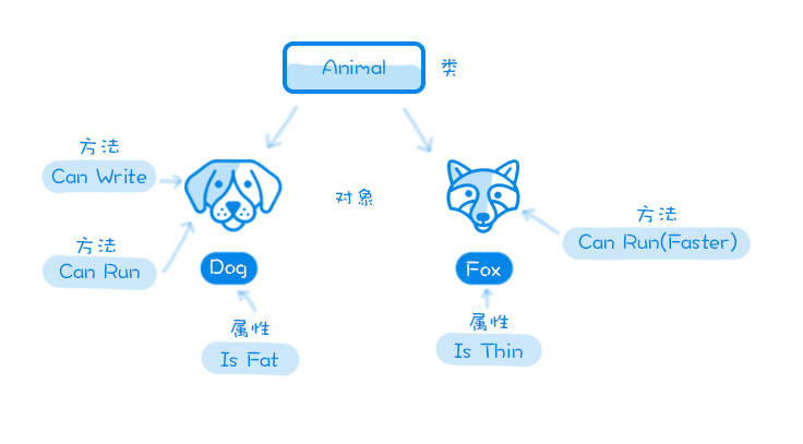 了解基本的面相对象开发流程和抽象、封装、继承、类、对象、多态等面向对象基本概念,如下图可以简单理解类、对象、方法和属性的概念,另外了解后端研发会用的其他语言中的基本概念,可以去翻翻比如 Java 开发、PHP 开发等相关的书。
