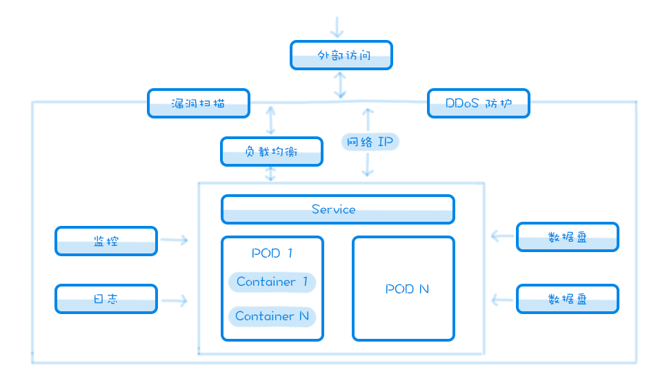 熟练掌握计算、存储、数据库、网络、消息、网络安全、私有网络等云计算业务基本概念、逻辑、架构以及业务间依赖关系,如下图是基于容器的计算服务相关业务的简单示意图,清楚 IaaS、PaaS、SaaS、CaaS、微服务等基本概念和基本结构,清楚云计算的权属分类,熟悉云计算的应用场景,如教育、游戏等等。